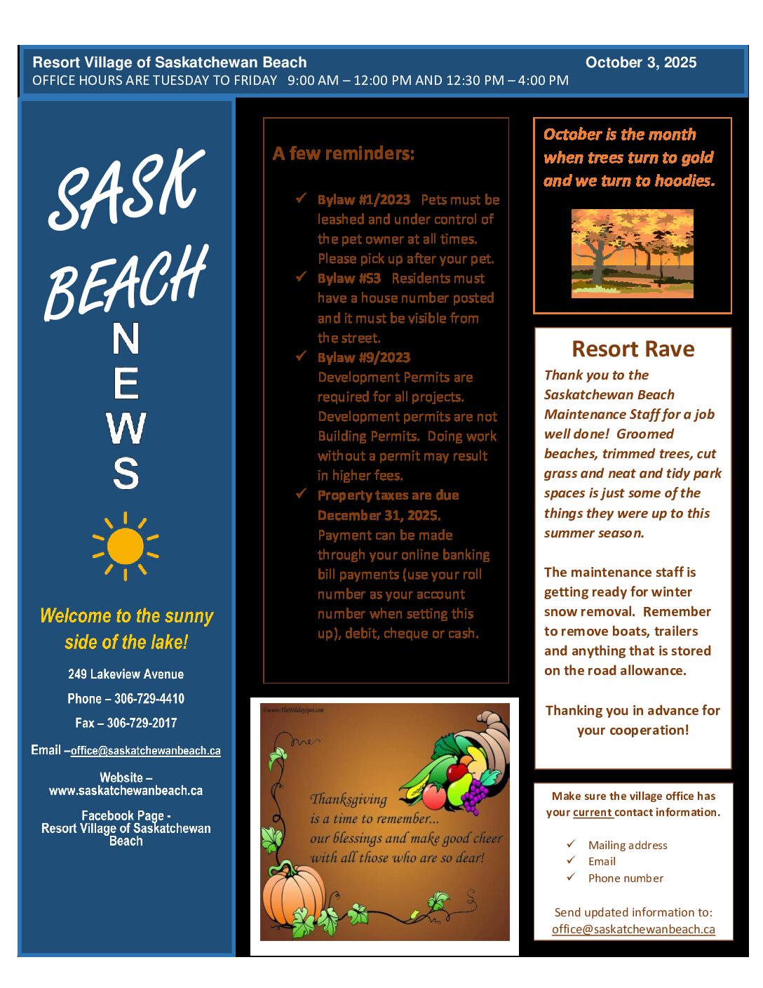 Sask Beach News October 3, 2025 Click link for 2nd page